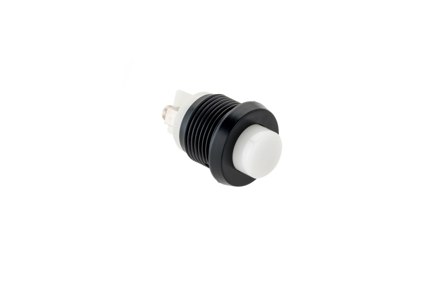 Einschraubkontakt schwer entflammbarer Kunststoff, Gehäuse weiß, Drücker schwarz, Außen ø 18,0mm, Einbau ø 15,0mm.
