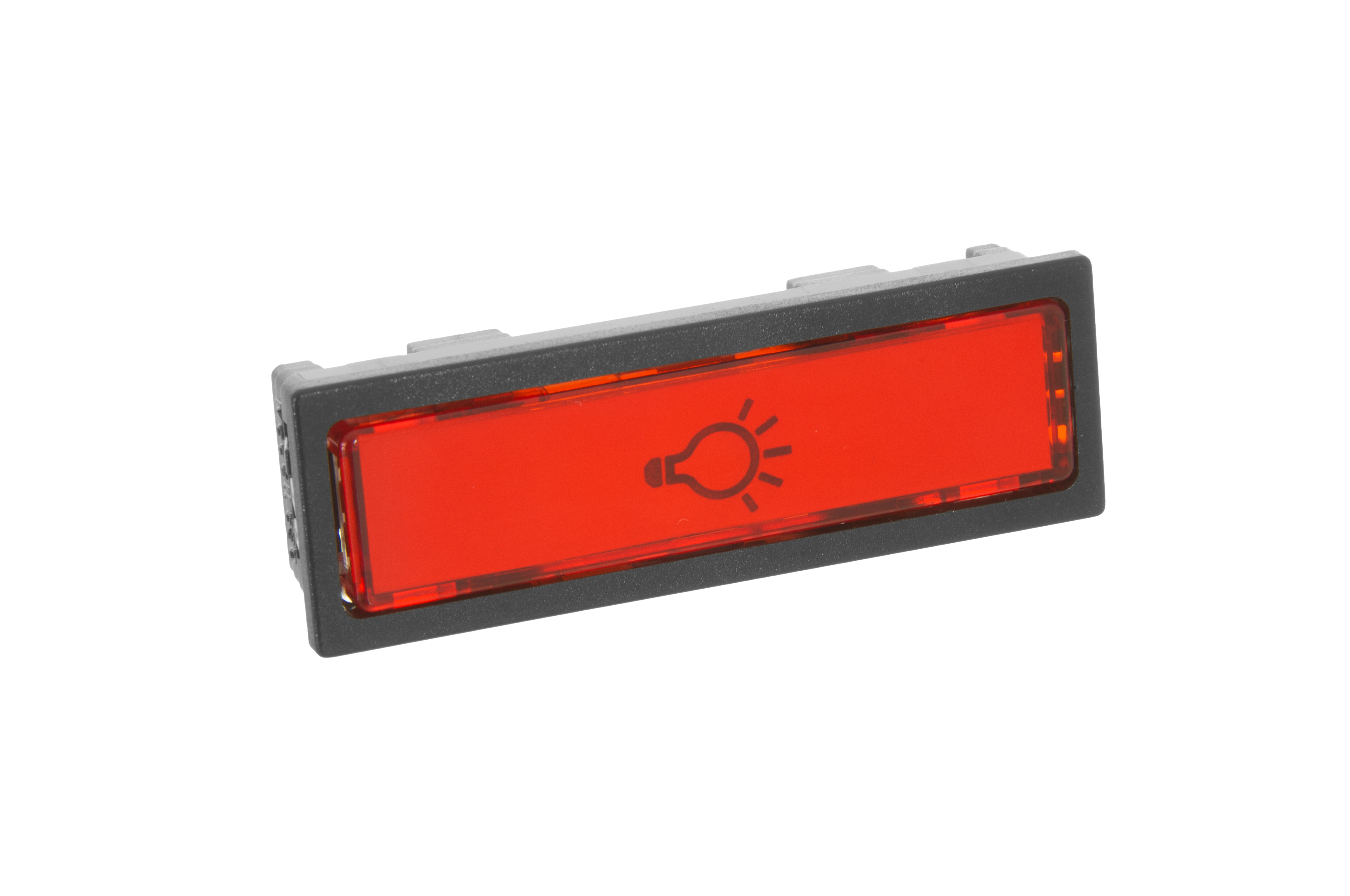 Lichttaster mit Reibungskontakt, beleuchtbar, Abdeckung rot transparent, Einlage Symbol Licht, Gehäuse glasklar.